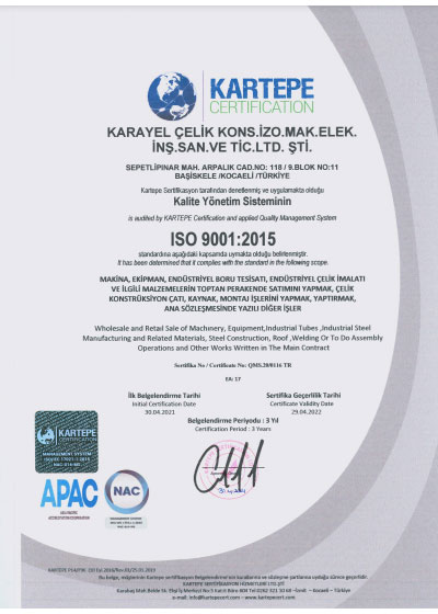 Firmamız KARAYEL ÇELİK, Musa KARAYEL’in birçok projedeki tecrübesi ile 2013 yılında kurulmuştur. Kuruluşumuzun ilke ve amacı, mükemmeliyetçi, yeniliklere açık, kaliteyi yaşam biçimi olarak kabul eden, hızlı ve güvenli üretmektir. Müşterilerimizin projelerinde topluma ve çevreye saygılı, tecrübe ve ahlaki değerlerimizden ödün vermeden, yıllara dayanan tecrübemizle tecrübe etmek. Mekanik ve statik projelerde sürekli olarak toplu çalışma ile en iyi saha yönetimi ilkesine uygun hareket etmektedir. teslim süresine kadar alanında lider firmalarla iletişim halindedir.